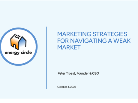 In this webinar, Energy Circle CEO and founder Peter Troast discusses why homeowners are no longer spending like they had been on home services, why now is exactly when your marketing efforts need to be reinforced to overcome market conditions, and what messages and strategies are working for insulation, HVAC, and solar contractors.