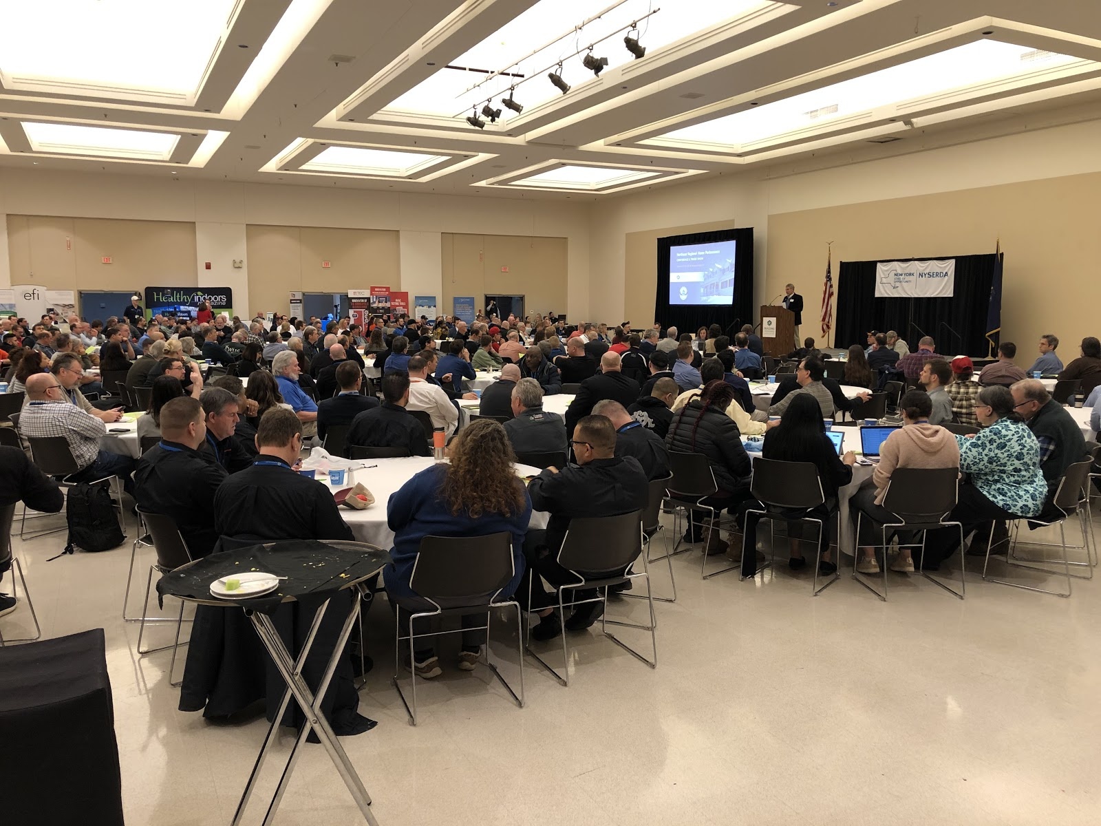 Over 500 attendees gathered in the main expo hall for opening day remarks from several NYSERDA leaders.