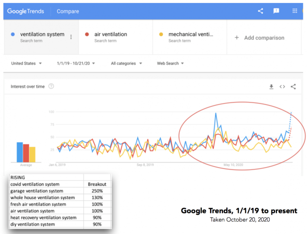 As guidance from health and safety authorities on the Coronavirus shifted its focus from surface transmission to airborne spread, we saw significant spikes on the digital marketing side in organic search interest around air purifiers, HVAC filters, indoor air quality, and finally - ventilation. This was probably not surprising to the general public, but in the HVAC and Healthy Home services industries, this is a trend we’ve been waiting and working for!
