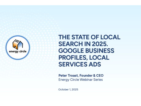 On Wednesday, October 1, at 5 pm ET, Energy Circle CEO and Founder Peter Troast will break down the latest trends in local search and what they mean for your business, including: